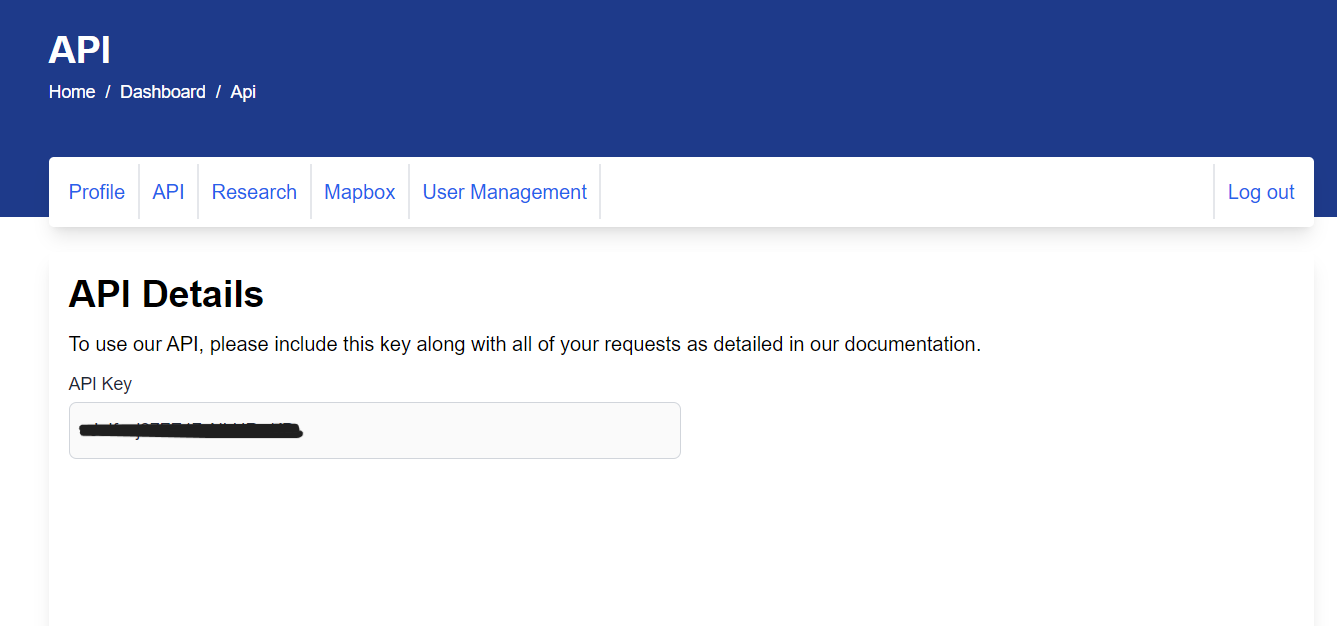 Once you're agreed, the page will refresh and you will be able to see your API key.